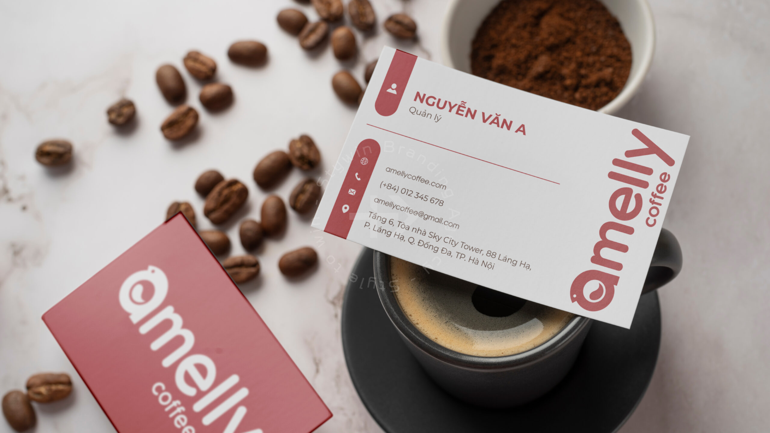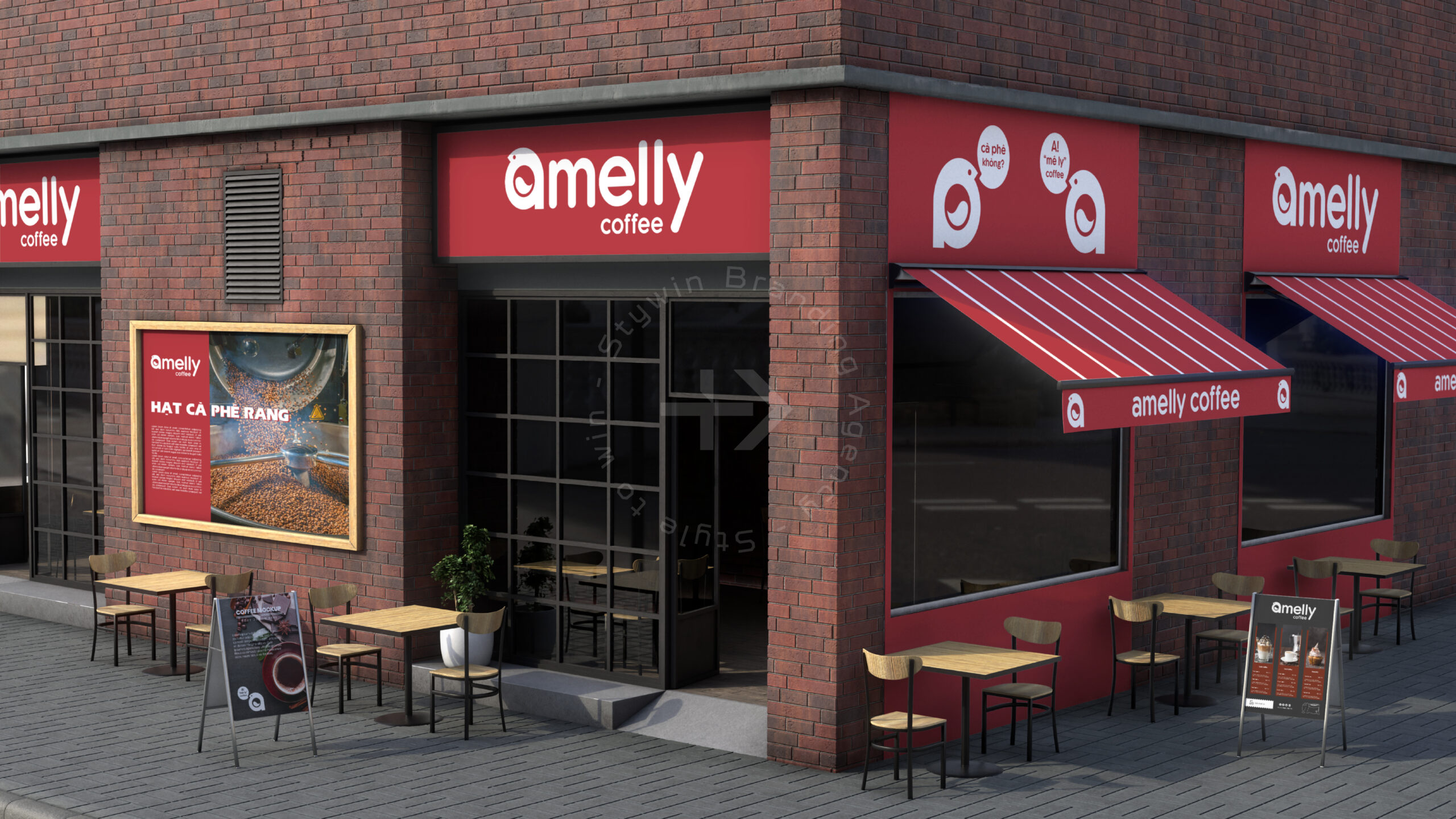 Trong dự án này Stywin branding thực hiện triển khai thiết kế thương hiệu Amelly Coffee |