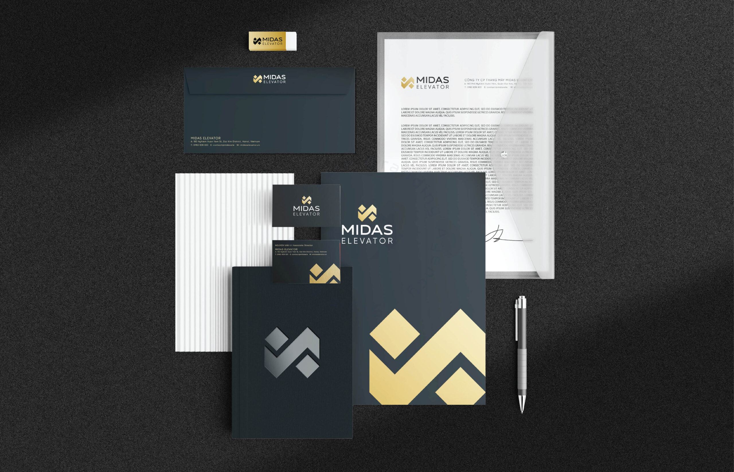 Trong dự án này Stywin branding thực hiện triển khai thiết kế logo và bộ nhận diện cho thang máy Midas Về Khách hàng: THANG MÁY MIDAS