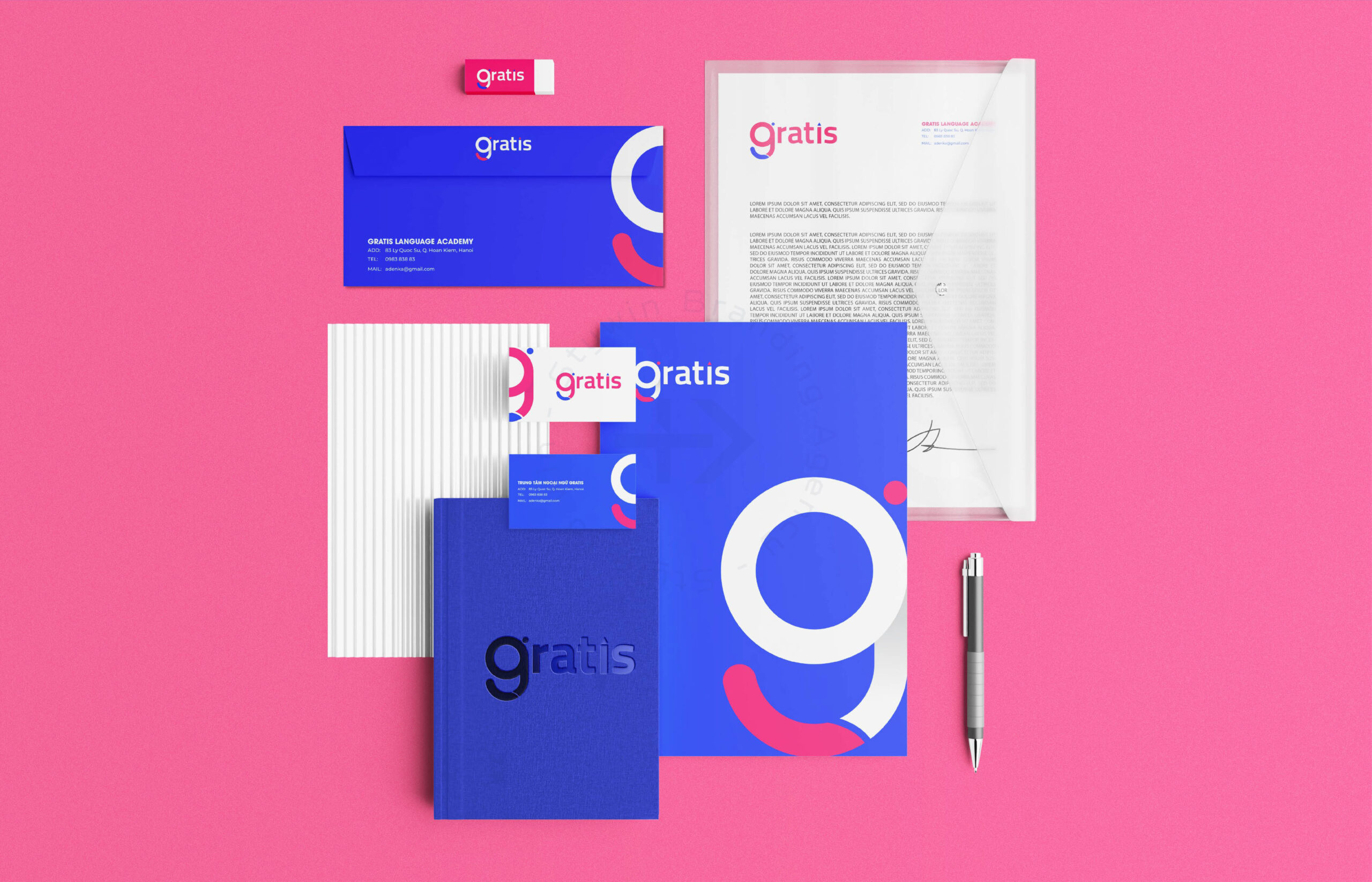 Trong dự án này Stywin branding thực hiện triển khai thiết kế thương hiệu Trung tâm tiếng anh Gratis